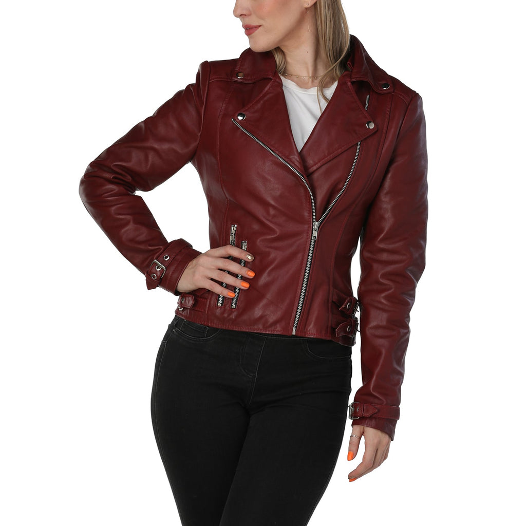 This gorgeous leather jacket, with its deep burgundy color, is the ultimate layering option whenever you want to make an unforgettable, bold statement. Wear it to casual social meetups, night outs, or even to a semi-formal event to convince the onlookers of your unparalleled style sense. You can layer it over a classic black bodycon dress, or simply over a stylist white top and jeans. It can complement your casual and dressy outfits in neutral hues, specifically beige, white, black, taupe, grey, or cream.