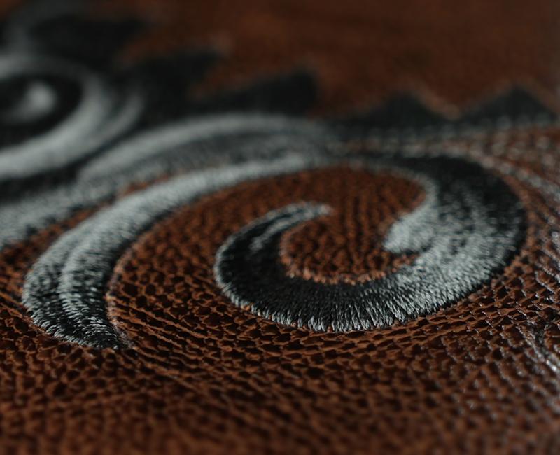 Grace up your leather hat with our slinky hand-threaded embroidery personalized just for you.