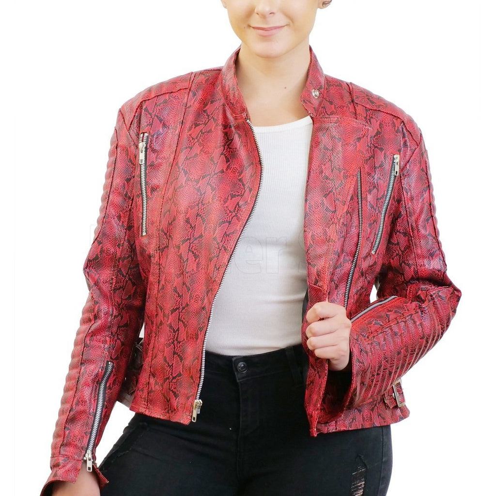 Bold Red Snake Pattern Faux Leather Jacket