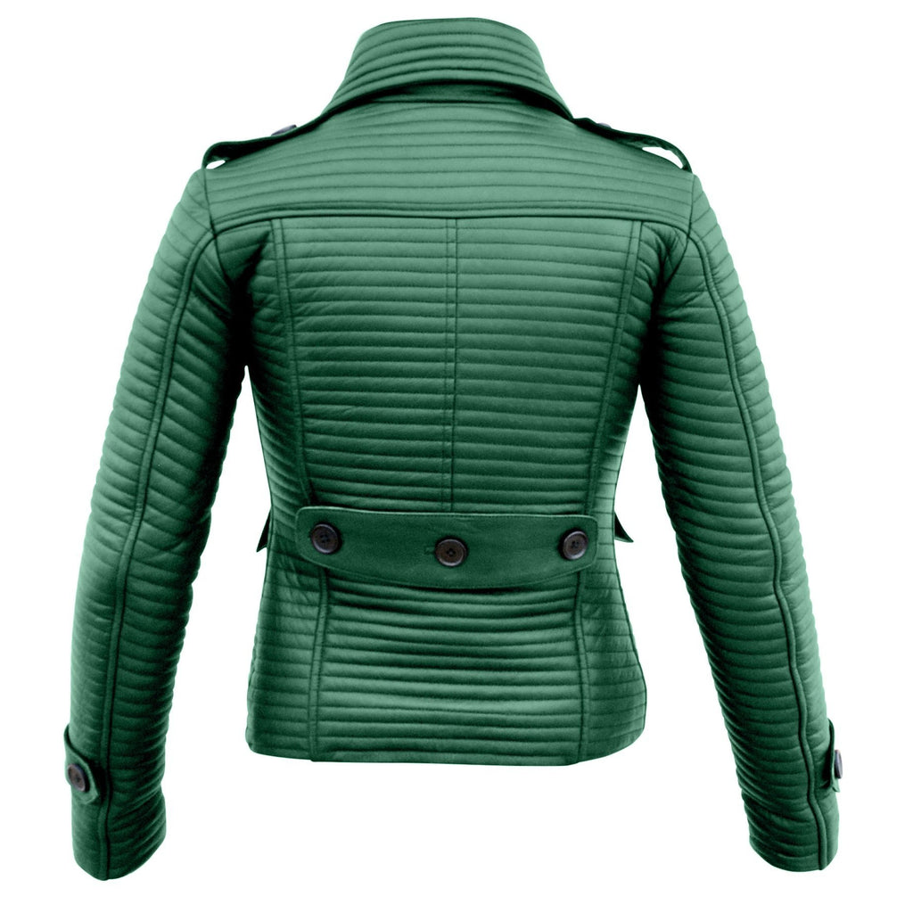 Leather Skin Women Green Rib Quilted Genuine Leather Jacket