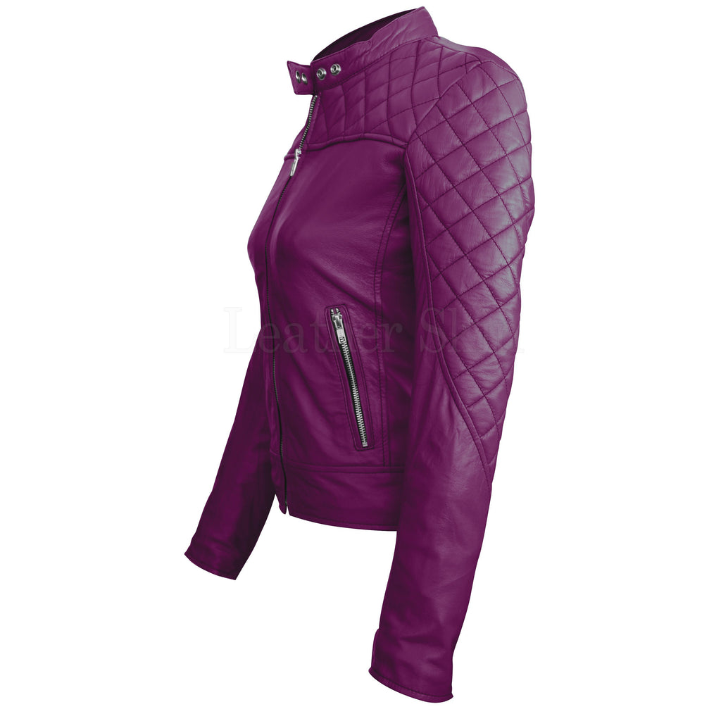 Leather Skin Women Purple Shoulder Quilted Genuine Leather Jacket