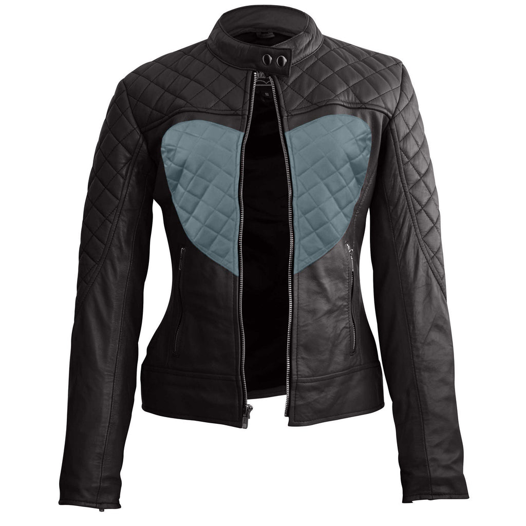 This women shoulder quilted gray love heart leather jacket is the embodiment of style, class and a little bit of cuteness with the gray heart designed right in the middle. The biker-style jacket is made with 100% genuine leather and comes with a shiny finish, complemented with a deep matte touch, to give a more premium look to the product.