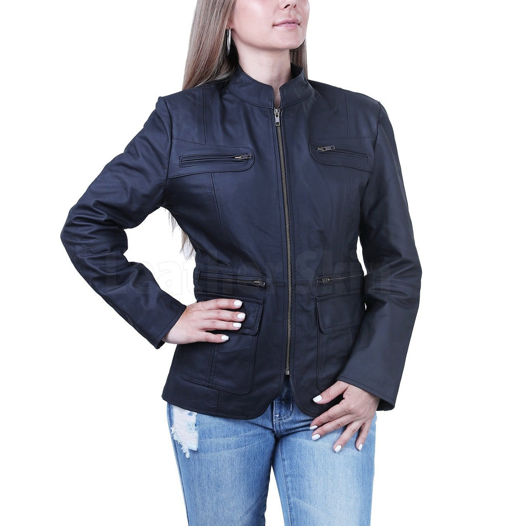 For the practical and minimalistic fashion enthusiast, we recommend our Women Charcoal Black Leather Blazer. Featuring long sleeves, a high collar, and a zip closure at the front, this jacket keeps you protected against the harsh, cold winds of the winter months. Furthermore, the 4 zipped up pockets and two additional pockets secured with front flaps, this beauty keeps your hands free and functional for anything that needs to be done – while making sure that you do not lose any personal belongings. The exceptional charcoal blazer combines fashion with function in a way that we have never seen before!